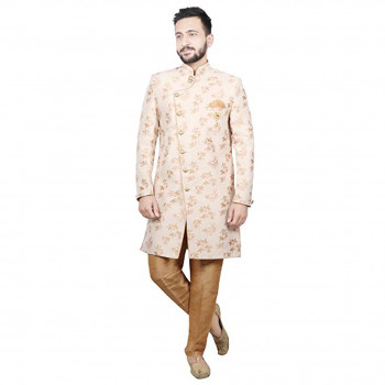 Product Details: We introduces to you these classy sherwani for men stylish latest design in variety of material and designs for all occassions. This fabric has been designed keeping in mind the latest trends in a semi formal fashion or occassional fashion. Engineering garments which fit all body types and style is our aim. We offer not just servani for man for wedding but also indo western for men and semi sherwani as well covering the entire space. Our servani are constructed in such a way that you can adorn it with a churidar, dhoti for men or a patiala too. To complete the look adorn a mojari or jutti slippers for men stylish, you may also try an authentic Kohlapuri chappal for men, the fashionistas and millennial folks may experiment with a brogues or oxfords juta for men stylish. Suitable for: Party, Weddings, Regular Wear, Celebrations, Occasions, Festivals, Lohri, Pongal, Makar Sakranti, Baisakhi, Holi, Eid, Raksha Bandhan, Dussehra, Diwali, Navratri, Pooja, Christmas, Onam, Ganesh Chaturthi, Janmasthmi and Gifts for Mens. SIZE:The above mentioned model is wearing the size of "L" WASH AND CARE: Dry Clean Only FIT TYPE: Regular Fit