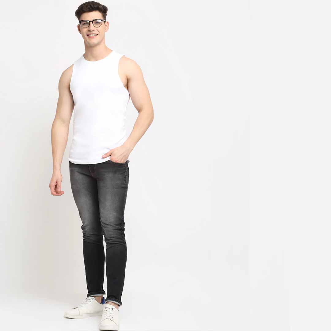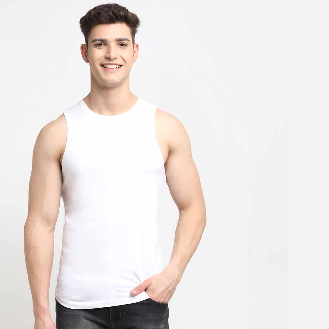 high quality premium solid casual sleeveless round neck apple cut gym vest direct manufacturers. 100% pure cotton 175 - 180 gsm cotton used. gives you perfect fit, comfort feel and handsome look. trusted brand online and no compromise on quality.